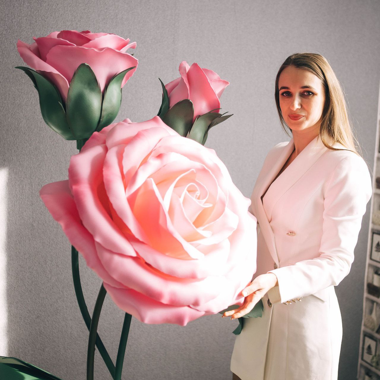 "Я - человек творческий, и всегда искала чем себя занять, но быстро бросала. А вот цветы меня зацепили. Работы Оли я увидела ещё в 2018 году, тогда я только начинала свой путь в больших цветах. Встретила рекламу Оли в интернете о живом мк. Очень хотела поехать, но финансово позволить себе не могла, поэтому до 2021 года училась сама. Заказы у меня были. В первый год я прям зашивалась, одарила всех коллег. Я работала в школе, родители заказывали у меня подарки для учителей и воспитателей. Мои цветы были новинкой у нас в городе, но больше, чем за 2000-3000₽ я свои работы продать не могла. Да мне и стыдно было,ставить выше цену, я понимала, что по качеству совсем не то. Совесть не позволяла."